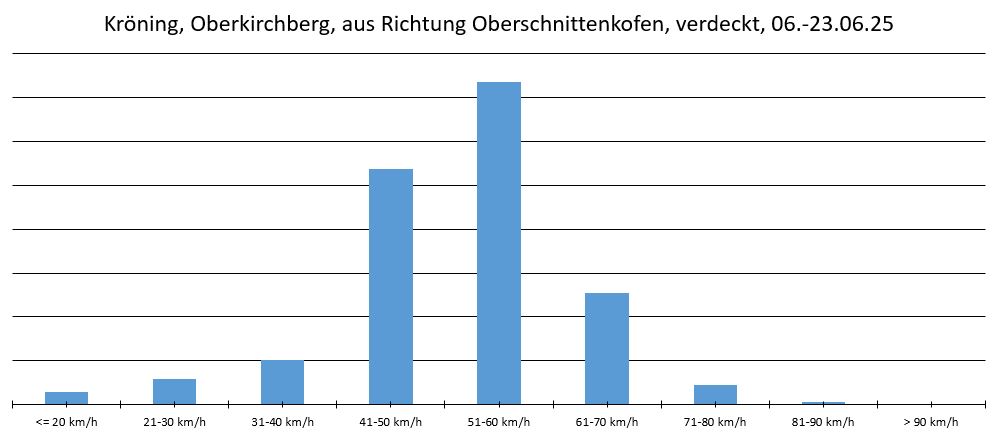 | Kröning, Oberkirchberg, aus Ri. Oberschnittenkofen | verdeckt | 06.06.-23.06.2025 | 1951 | 50 km/h | 61 km/h | 58,89 % |